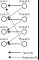 加锁顺序当多个线程需要相同的一些锁,但是按照不同的顺序加锁,死锁就很容易发生。如果能确保所有的线程都是按照相同的顺序获得锁,那么死锁就不会发生。看下面这个例子:Thread 1: lock A lock BThread 2: wait for A lock C (when A locked)Thread 3: wait for A wait for B wait for C如果一个线程(比如线程3)需要一些锁,那么它必须按照确定的顺序获取锁。它只有获得了从顺序上排在前面的锁之后,才能获取后面的锁。例如,线程2和线程3只有在获取了锁A之后才能尝试获取锁C(获取锁A是获取锁C的必要条件)。因为线程1已经拥有了锁A,所