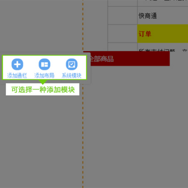向下增加模块:表示可在该模块下方增加一个通栏模块。