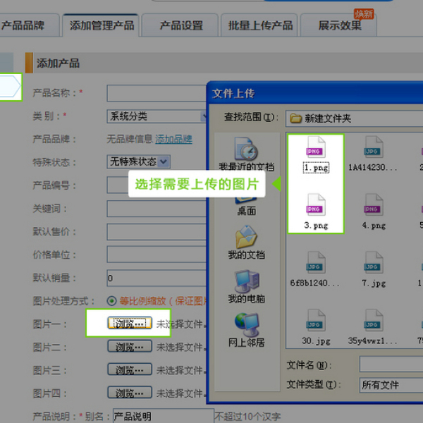 ② 产品参数设置,数据统一如:编号、图片大小等。