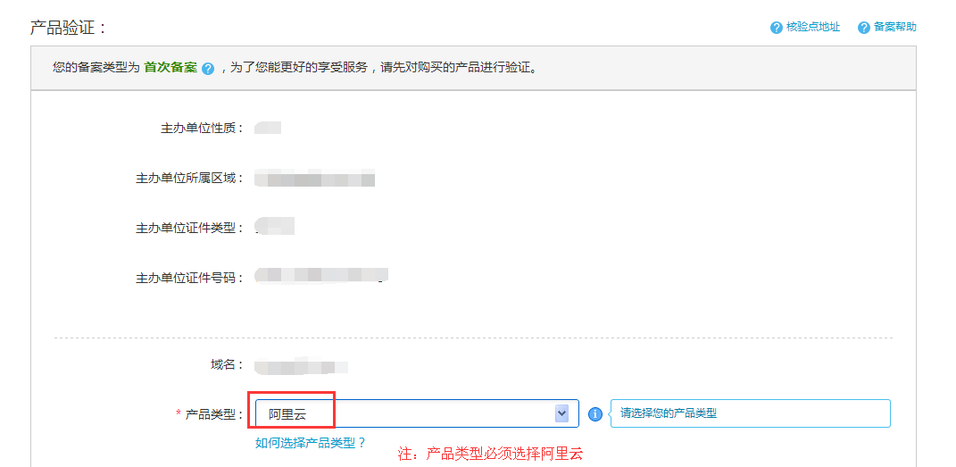 输入以上信息后,系统会自动验证备案类型。如图所示: