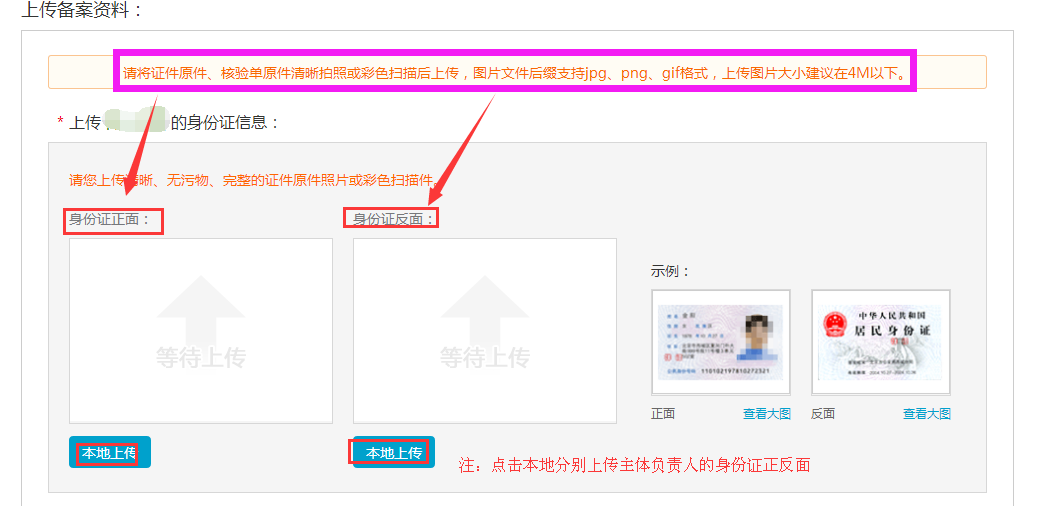 以上信息填写完成后,个人备案请点击继续上传备案资料。企业备案如果法人和网站负责人不是同一个人,请继续填写网站负责人的信息,再点击上传备案的资料。如图所示: